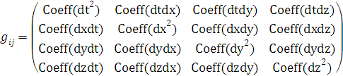 являются компонентами метрического тензора, которые в инерциальной декартовой