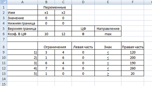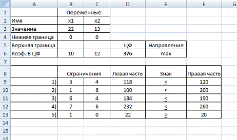 ) Решим задачу в MSExcel