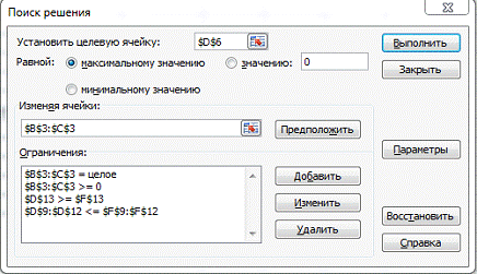 Ограничения задачи имеют вид: