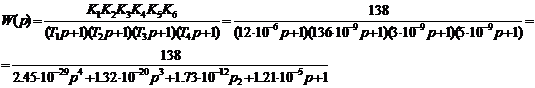 ее с погрешностью 5%, запишем выражение передаточной функции через типовые