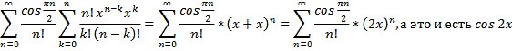 разложение рядов, практически полностью совпадает с графиком функции cos2x,