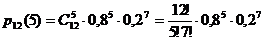 n = 12 k = от 5 до 12 p=0,8 q= 0,2