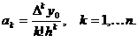 f(xi) для равностоящих значений независимых переменных: