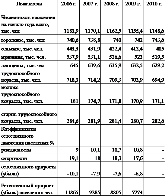 рынка труда; сокращение численности населения области, низкий уровень жизни