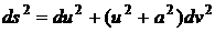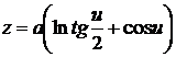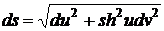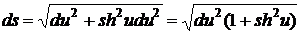 найти длину дуги, необходимо найти линейный элемент псевдосферы. Для вычисления