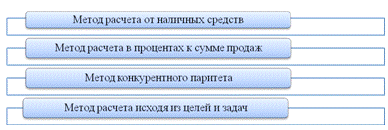 расчета в процентах к сумме продаж, метод конкурентного паритета, метод расчета