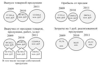 «Нефтеюганскнефтехим», технико-экономические показатели за 2009-2011 годы,