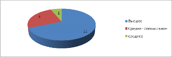 11 имеют высшее образование, 4 средне - специальное (заочно получают высшее