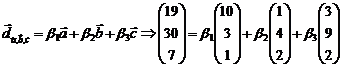 d=19i+30j+7k в базисе векторов a,b,c.