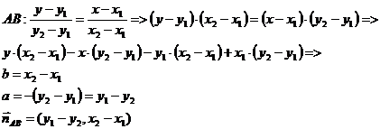 Определим a и b для прямой АВ: