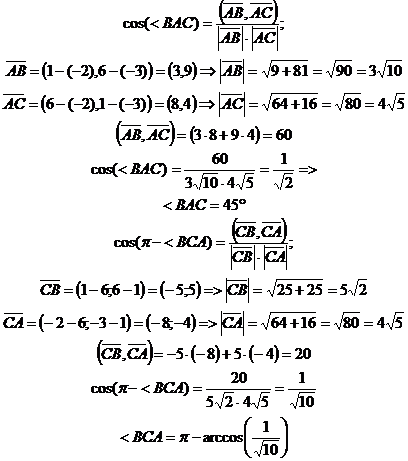 ) вычислить скалярное произведение векторов из