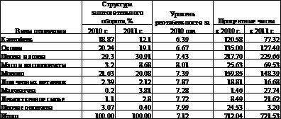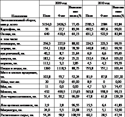 по производству целого ряда продукции: овец и коз, картофеля, плодов и ягод,