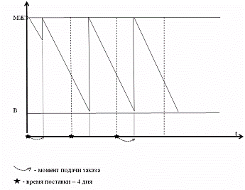 поддержание заказа, - размер заказа, восполняющего запас, - затраты на хранение