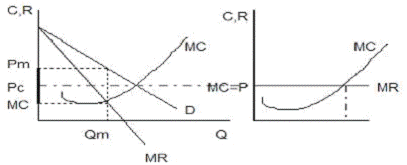 Рис. 2. Условия равновесия: чистая монополия и совершенная конкуренция