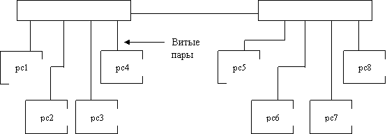 звездной топологии с использованием витых пар, коаксиального или волоконно-оптических