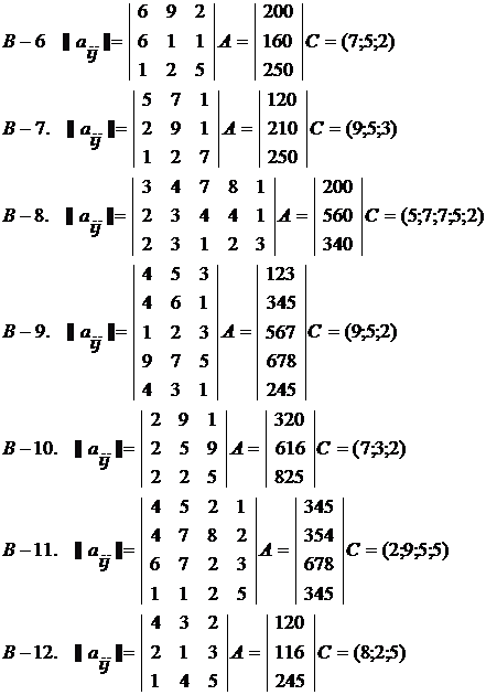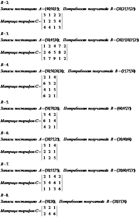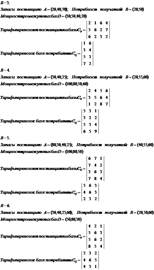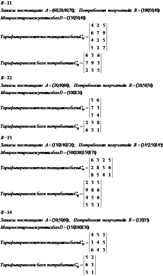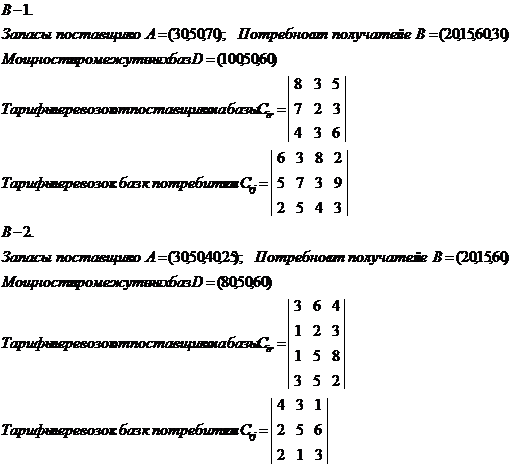 пункты потребления В1, В2, В3 и В4. Исходные данные представлены в таблицах: