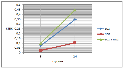 від часу перебування в умовах забрудненого повітря протягом 5 та 24 годин з