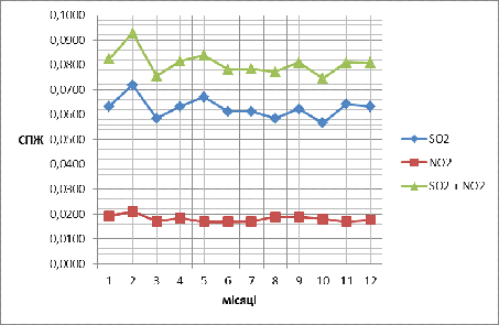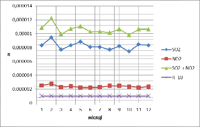 мг/(м3*діб) Кзабр NO2 - 0,68 мг/(м3*діб), розрахована імовірність перебування