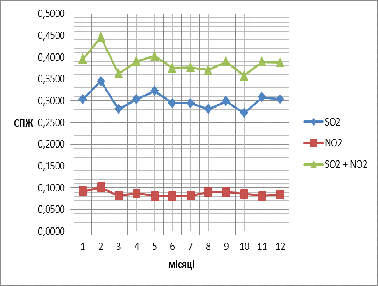 розраховані: питомі концентрації кожного з забруднювачів, Кзабр SO2 - 0,137