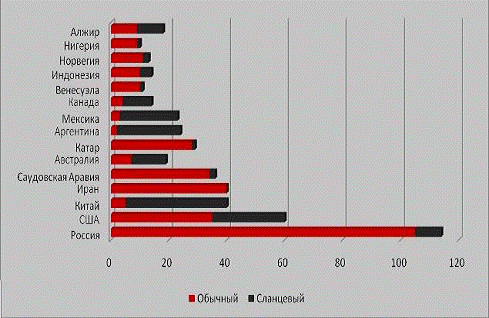Запасы традиционного и сланцевого газа в некоторых странах (млрд. м3)