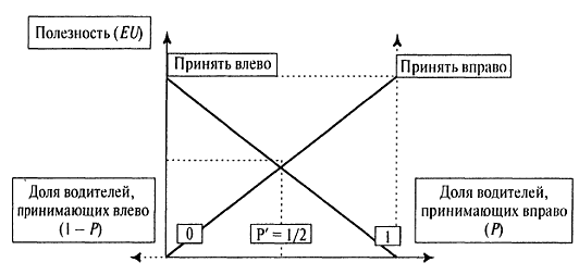 автомобилистов Б, принимающих вправо (1 - Р). Условие для того, чтобы стратегия