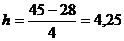 = 4, хmax = 45 ц., хmin = 28 ц.