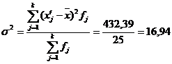 отклонение, среднее квадратическое отклонение, дисперсию, коэффициент вариации.