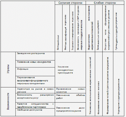 сумма экспертных оценок комбинаций сильных и слабых сторон с угрозами и