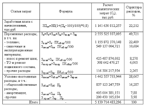 3. Анализ себестоимости автомобильных перевозок