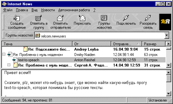Работа с Internet News.