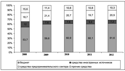 Рисунок 5. Структура внутренних затрат на ИиР по источникам