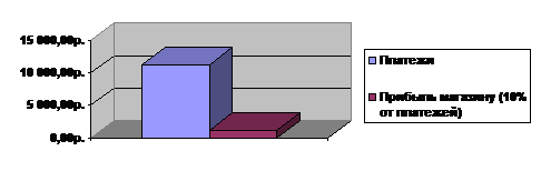 комиссию 10% за услуги транзакции, можно рассчитать прибыль магазина за