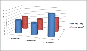 нормам не соответствует требованиям в кабинете №1 и кабинете №2.