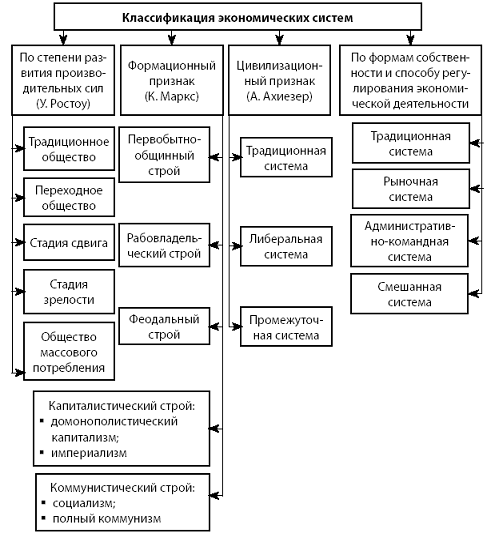 классифицируют экономические системы по-разному, общий вид представлен в