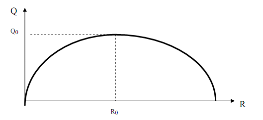 Зависимость между налоговыми ставками R и объемом налоговых поступлений Q