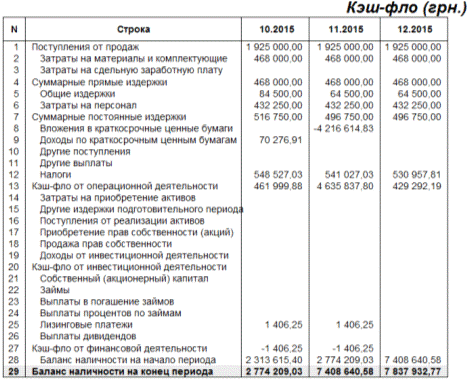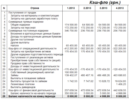 Рис. 3.13. Кеш-фло (початок проекту)