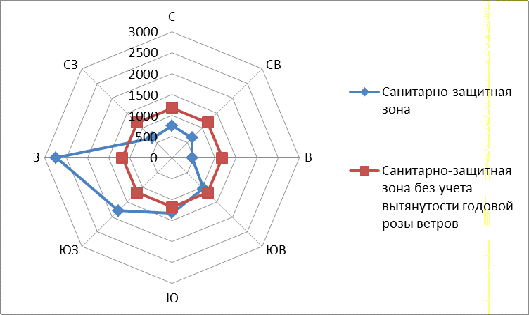 санитарно-защитной зоны с учетом вытянутости розы ветров.