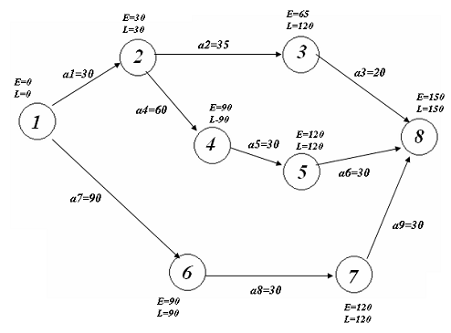 Критических пути 2: 1) а1-а4-а5-а6; 2) а7-а8-а9