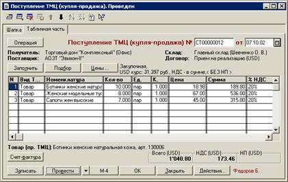 автоматизации бухгалтерского учета товарных операций на предприятии