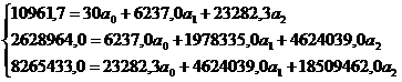 при а0 (в 1-м уравнении на 30, во 2-ом - на 6237, в 3-ем - на 23282,3) получим