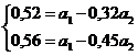 уравнение 0,52=а1-0,32а2 а2=-0,3: