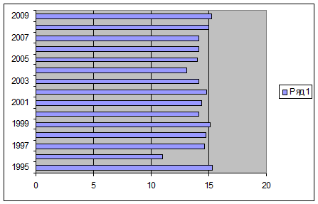 В 2009 году коэффициент фондов (коэффициент дифференциации
