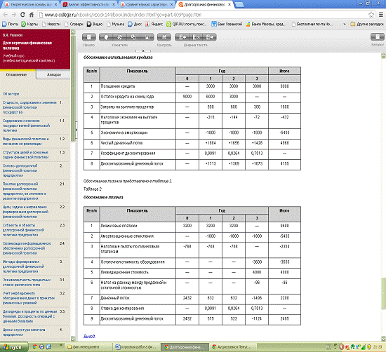 оценки эффективности лизинговых операций. Сравнительные характеристики лизинга