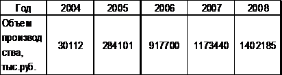продукции с 2005 по 2008 года приведено в таблице 1:
