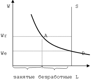 безработицы основывается на отклонении линии предложения труда, структурного -