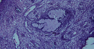 characterized by focal thickness of mucous membrane of cervical canal, glands