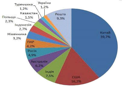 вугілля в паливно-енергетичному балансі України складає 69%, що є одним з