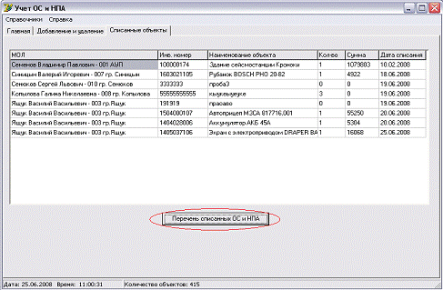 соответствующей таблицы. При нажатии кнопки «Возврат» осуществляется переход на