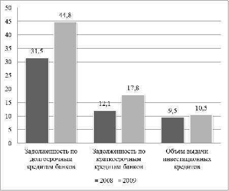 7. - Динамика долгосрочных, краткосрочных и инвестиционных кредитов в2008-2009