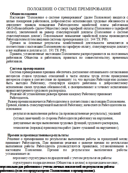 системы мотивации в ОАО «Новосибхлеб».